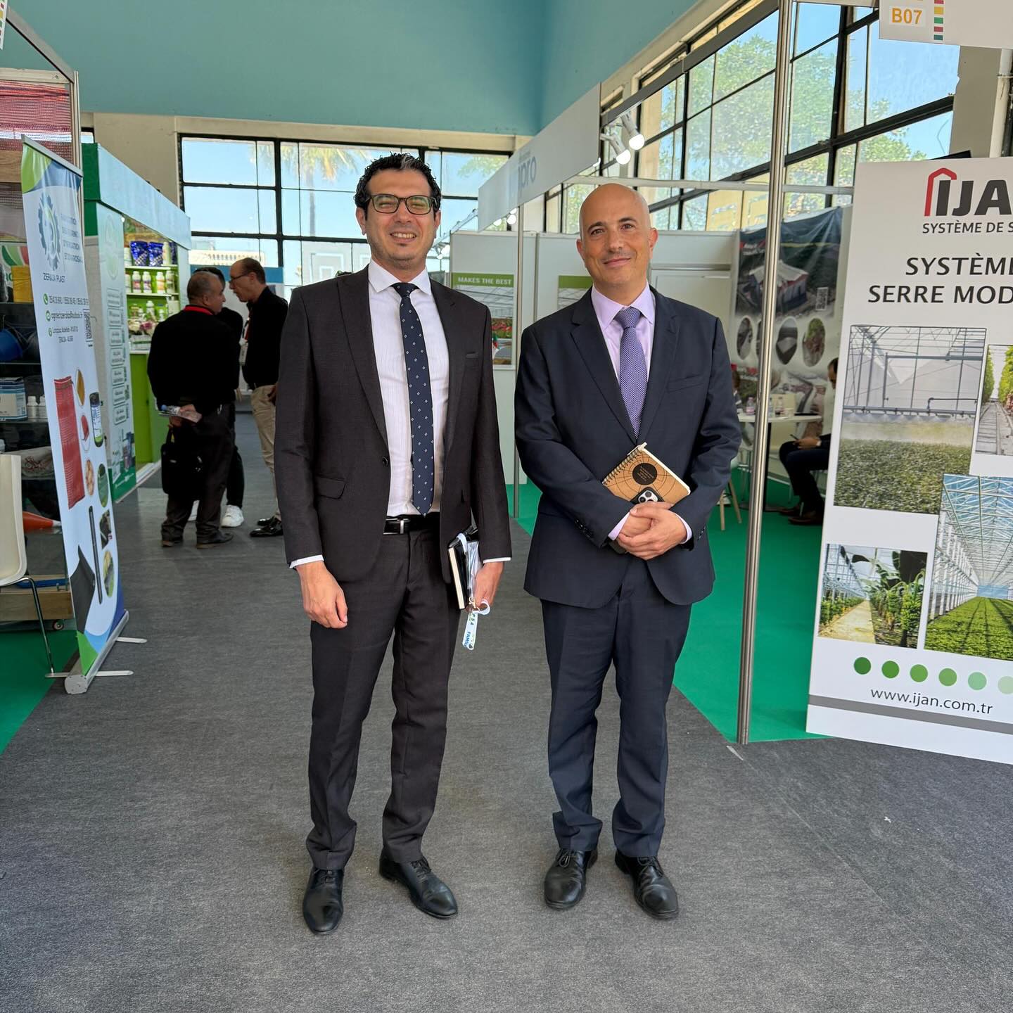 Durante la feria, el Embajador Berardi mantuvo reuniones de trabajo con los principales organizadores del evento, incluyendo al Dr. Amine Bensemmane (Presidente), Mohamed Hadj Henni (Vicepresidente) y Katia Yata (Coordinadora General), con el objetivo de fortalecer la presencia argentina en los mercados agrícolas africanos.